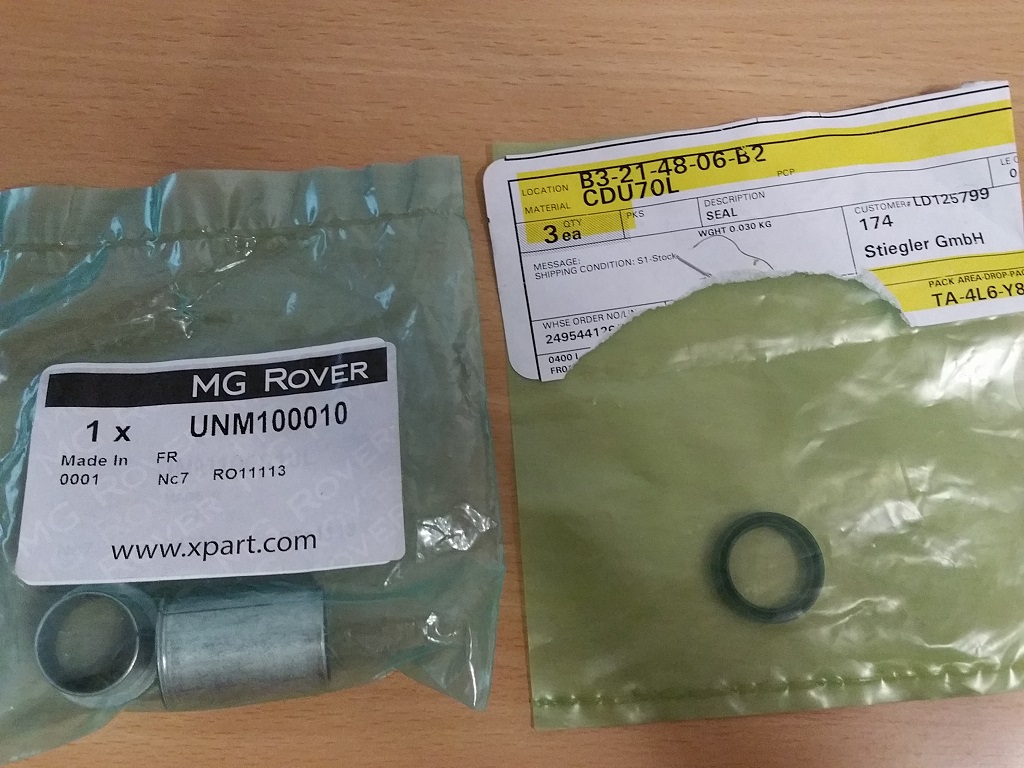 Heute sind Kleinteile gekommen: Darunter der Hülsen UNM100010 und ein Dichtungsring: Dateianhang: