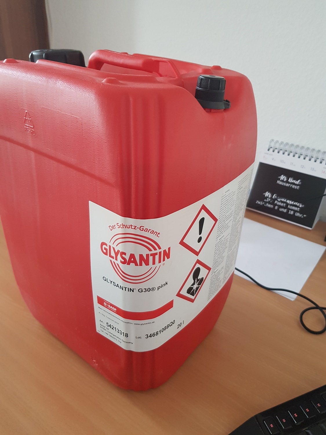 So, jetzt habe ich nen 20 L Vorrat für alle frei Autos die irgendwie alle ein wenig Kühlwasser verbrauchen...