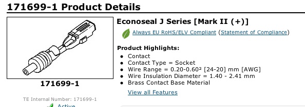 Danke schonmal ihr beiden Dieter hat geschrieben: Tyco female terminal 0-0171662-1 = volltreffer und die Silikonhülse: 0-0172746-1Wie man unschwer lesen kann, sind die für minimum 0,5qmm, und kleiner gibt es die auch nicht. Jo, die hab ich heute Nacht auch gefunden, bei Tyco Electronics auf der Website, und da gibt es auch eine schöne Maßzeichnung dazu: Und kleiner haben die die auch, die heißen dann 171699-1 und sind für Litzen zwischen 0,2 und 0,6 mm² gemacht. Schade, dass Rover die nicht kannte Dateianhang: