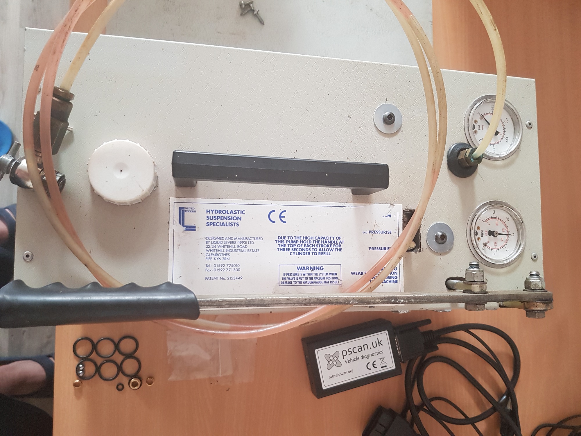 Leider drückt es die Hydrolastikflüssigkeit jetzt beim hochziehen des Pumphebels aus dem Druckzylinder raus auf der Stellung "Pressurise". Die Flüssigkeit scheint sich auch immerhalb der Pumpe zu verteilen, weil Sie am Ende unten auslief. Der Wählschieber selbst bleibt trocken / dicht und gängig in alle Richtungen.