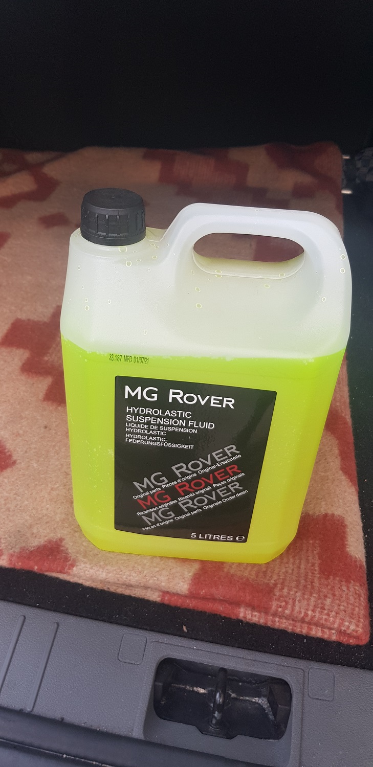 Kurze Rückfrage, heute kam von MG Rover Teile die Hydrogasflüssigkeit. Neuerdings ist das ein durchsichtiger Kanister. Dateianhang: