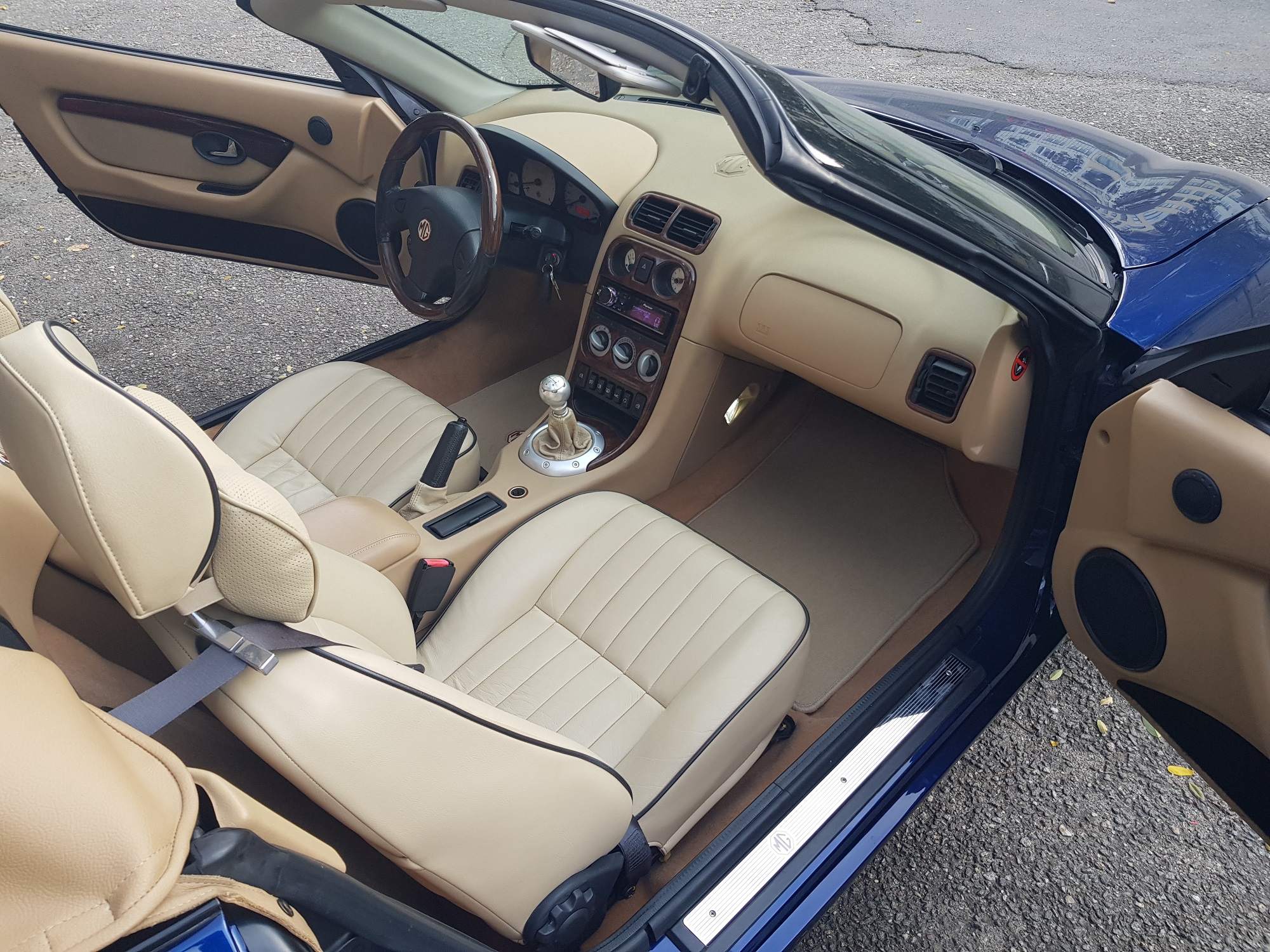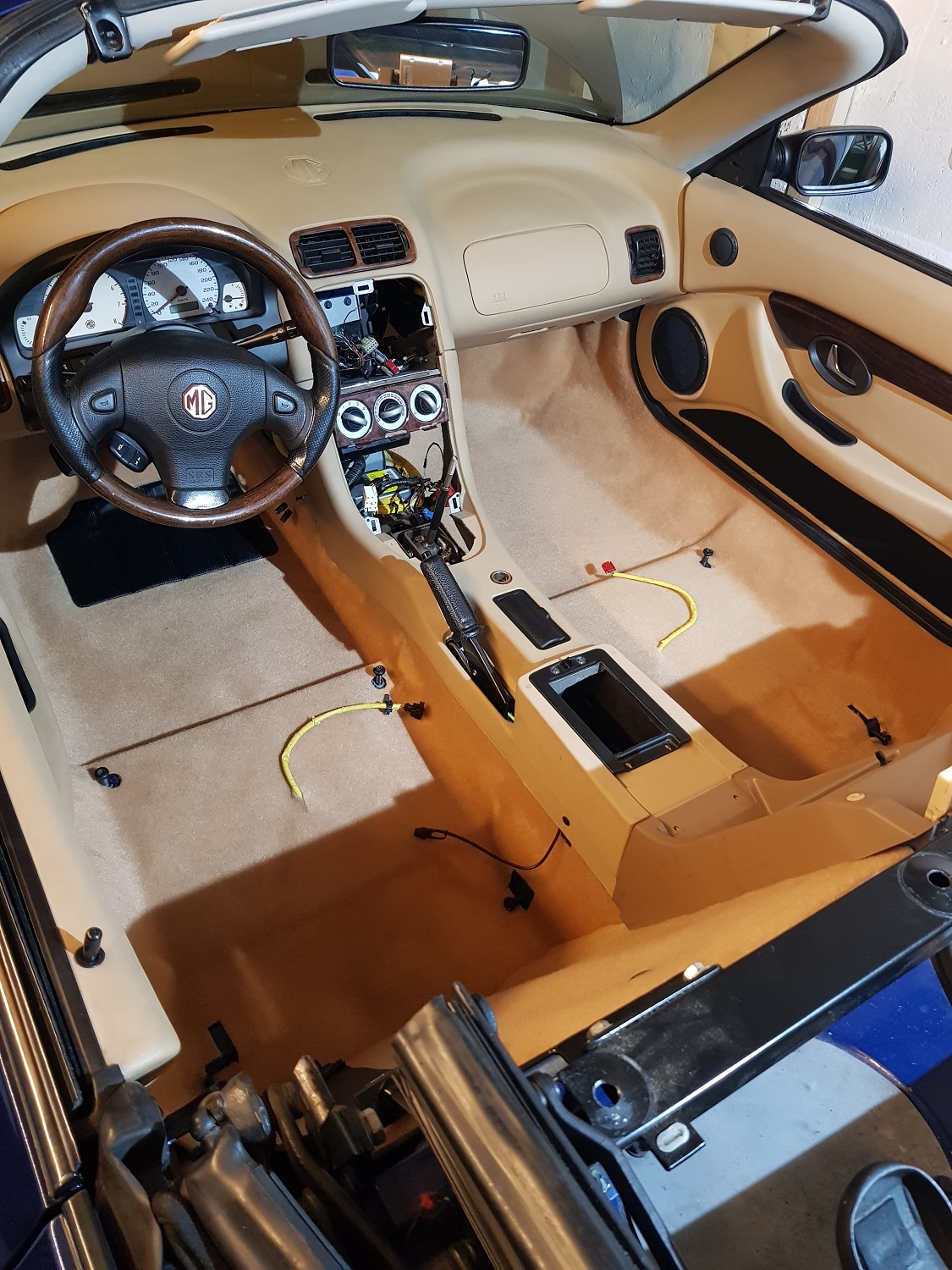 Nun denn, ein Schritt weiter, aber so richtiges Jaguar Innenraumfeeling kommt noch nicht auf. Das Lenkrad und der Lenkstock muss beige, sowie die Gurte. Und dann muss die Mittelkonsole mehr Wurzelholz bzw. der Schaltknauf.