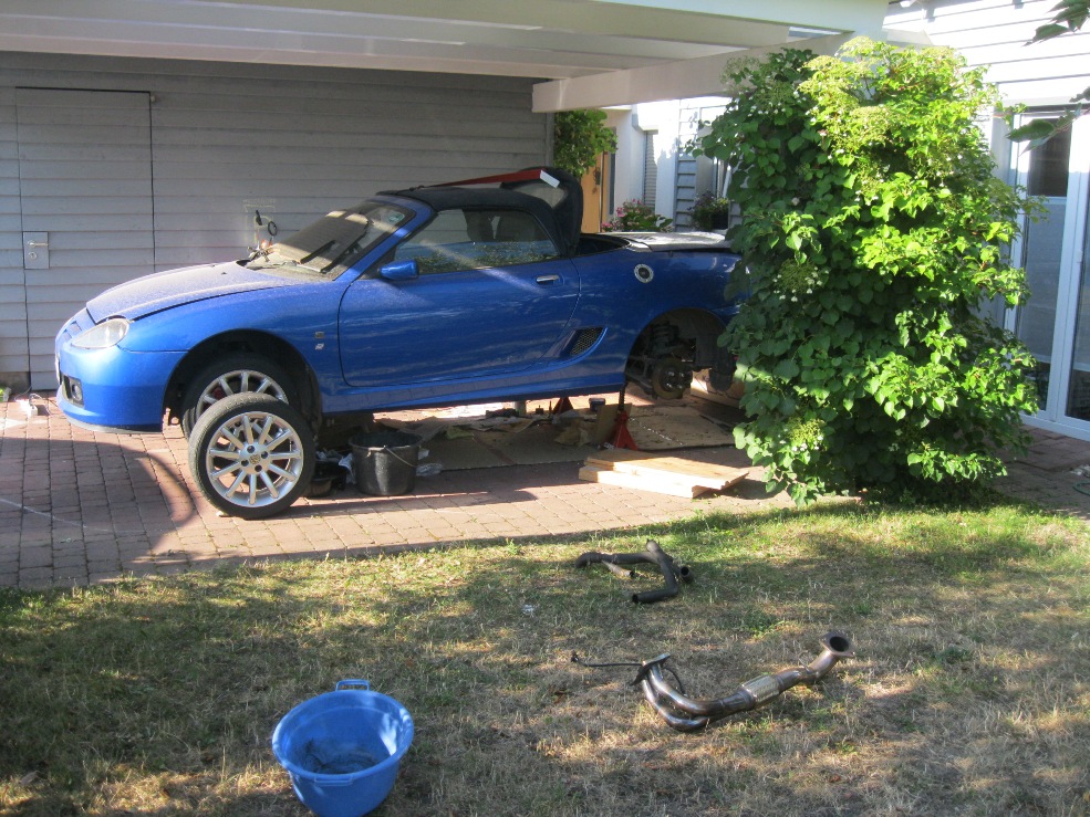 Gestern den Benzinstecker richtig zusammengesteckt, Kabelbinder drum (Danke nochmal an Mykel!). Wer denkt sich sowas aus? Dann Strom drauf, Motor an zum Entlüften (mit Feuerlöscher anbei, will ja nicht das Carport abfackeln  ), Leerlauf problemlos, kein Sprit verloren. Aber Kühlmittel! Tropft hinten irgendwo mittig/links am Motor runter. Die (neuen) Schlauchschellen nochmal nachgezogen, an die ich von oben rankam. Muss aber eher unten sein, wo ich nichts sehen konnte. Da werde ich die Rampen wieder aus dem Keller holen und nochmal suchen müssen. Mittlerweile habe ich auch eine neue Zahnriemenspannerbefestigungsschraube bestellt. Wenn die da ist, muss die MG zu dem Zahnriemen-vor-vier-Jahren-gewechselt-habenden Hinterhofschrauber. Der soll sich die Nockenwellenräder/Kurbelwellenmarkierung nochmal anschauen und die neue Schraube reinmachen. Meinem Gewindestab traue ich selbst nicht so recht. Wäre ja echt blöd nach der vielen Arbeit, wenn sich da so ein Zahnriemenspanner selbständig macht  . Vielleicht muss der dann auch noch nach der Kühlmittelleckage suchen. Never ending story. Ob ich dieses Jahr noch fahren kann? Grüße aus Tauberbischofsheim Christof