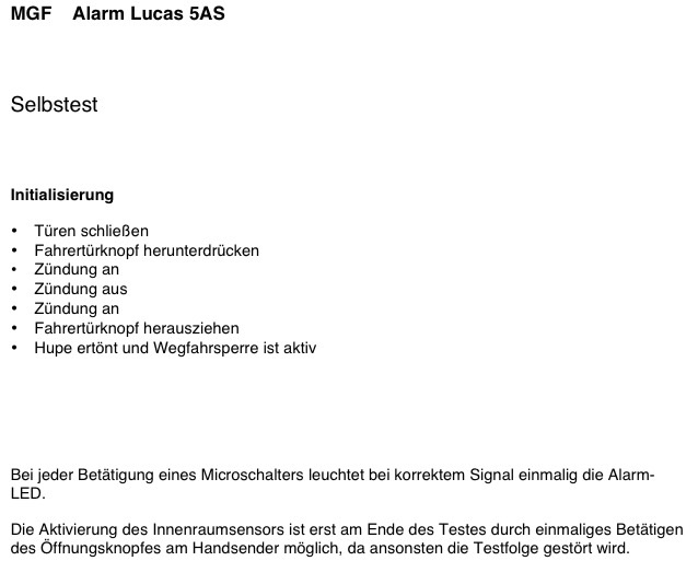 Ich kann das momentan nur bei meinem TF gegenchecken (Pektron-Elektronik), aber an sich sollte das ähnlich sein. Wenn du abschließt, müsste die Hupe einmal kurz tönen. Das Problem ist, dass du nicht weißt, ob es das Fahrer- oder das Beifahrerschloss ist, denn einen Türkontakt haben beide. Letztlich bleibt nur, beide Türpappen zu entfernen und jeweils ein Schloss abzustecken. Da wo das Licht aus bleibt ist der Defekt.
