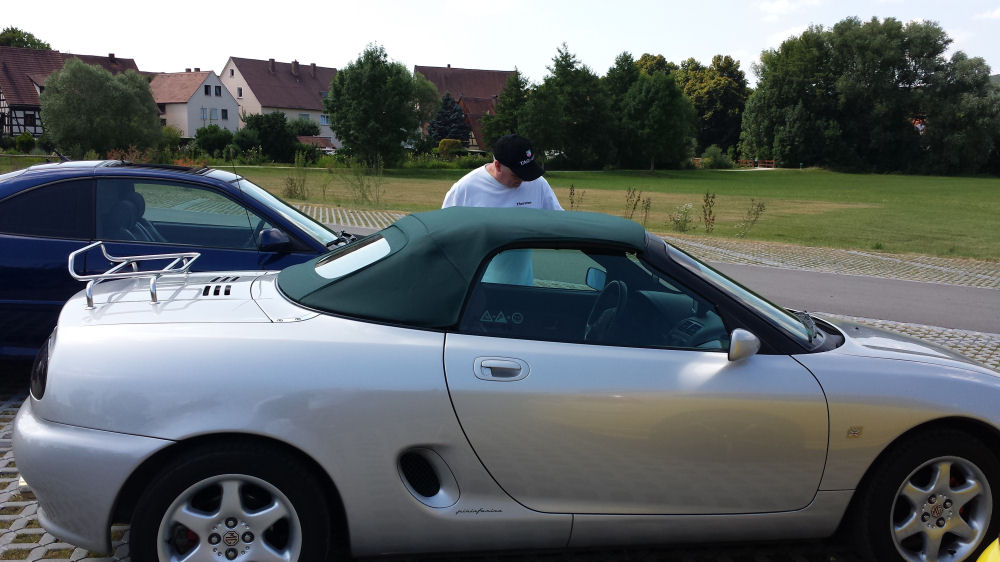 Für den Michael, Verdeck öffnen bis es stoppt, dann die erste Querstrebe nach vorn legen und zu. Oder PM nutzen, dann kann ich Dir das mit Handy zeigen. Bernd
