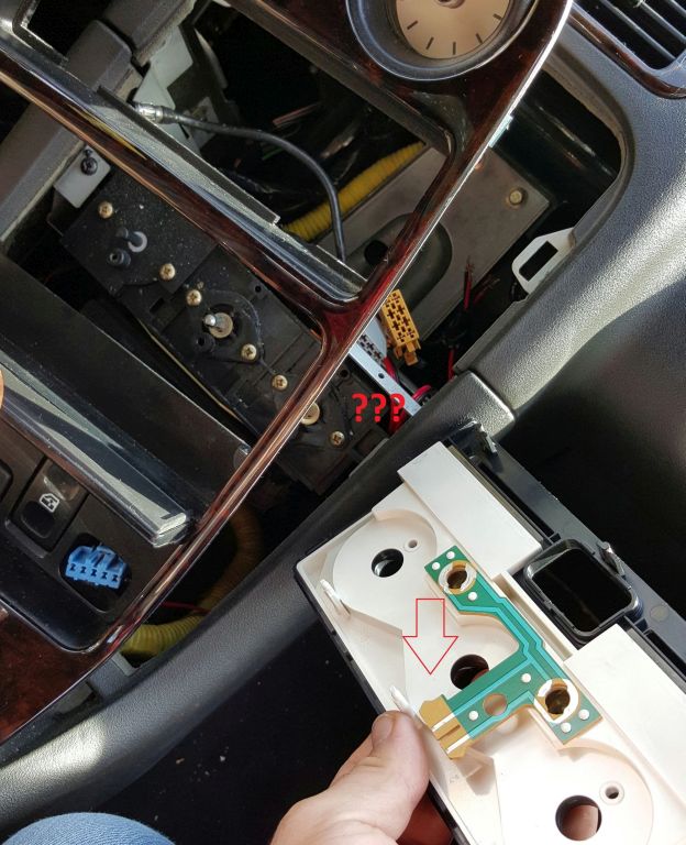Hey, ich quäle mich mit der Instandsetzung der Klimabedienteilbeleuchtung... Nachdem ich die Glühbirnen erfolglos getauscht habe denk ich es könnte ein Kontaktproblem sein. Jetzt hab ich bei der gestrigen Suche aber gar keinen Bereich gefunden in dem Kontakt bestehen kann Schaut mal auf dem Bild, rechts in der Hand habe ich ja das Bedienteil mit Glühbirnen, links verbaut seht ihr ja den Bereich auf den es drauf kommt, was am Ende mit 2 Schrauben und den 3 Drehknöpfen gesichert ist. Die Frage ist wo holen sich die auf dem Teil rechts zu sehenden 2 Leiterbahnen denn den Strom her? Auf dem Klimateil links gibts nix vergleichbares wo die aufliegen könnten.... dank für die Hilfe Sebastian