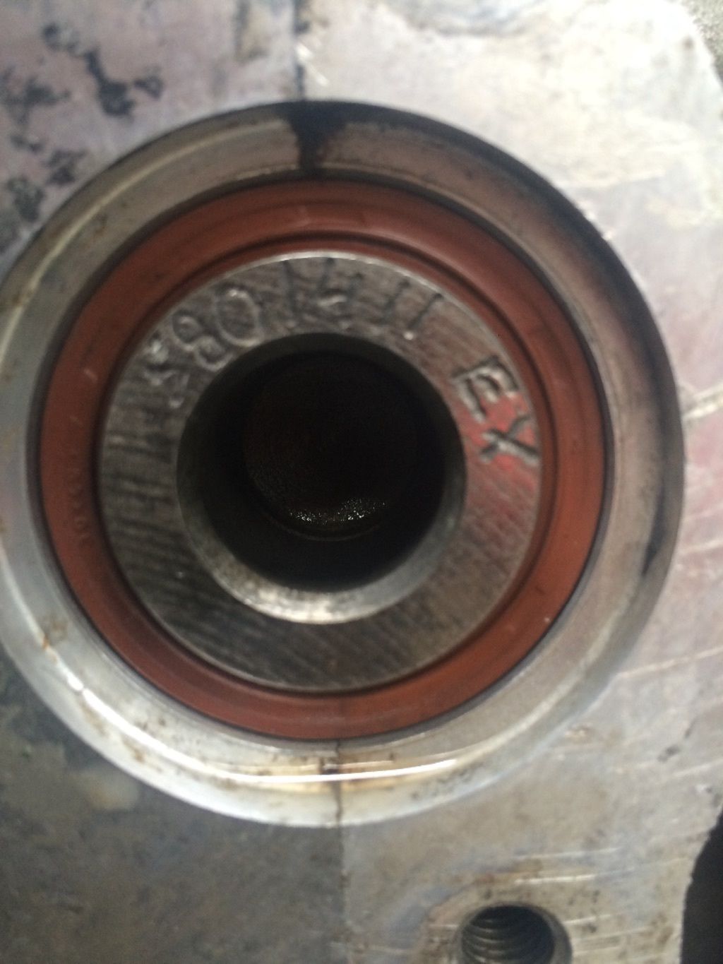 Die manuelle hat drei davon, eine für die Halteschraube der Spannrolle, eine für die Sicherungsschraube des Blechs und eine für den Pfosten der Einstellfeder. Die automatische hat nur zwei, eine für die Halteschraube und eine für den Stift, wo die automatische Feder drüber gelegt wird. Die Bohrungen liegen dabei völlig unterschiedlich. Interessant ist, dass bei dem Kopf offensichtlich eine Alu-Ansaugbrücke verbaut war, wenn man sich die Dichtung ansieht. Ist aber ein Mk1-Kopf (brauner ECU-Temperatursensor), aber kein VVC. Außerdem wurde ein Fremdsensor für die Kühlwasseranzeige verbaut (Flachstecker als Anschluss). -> Bastelbude?