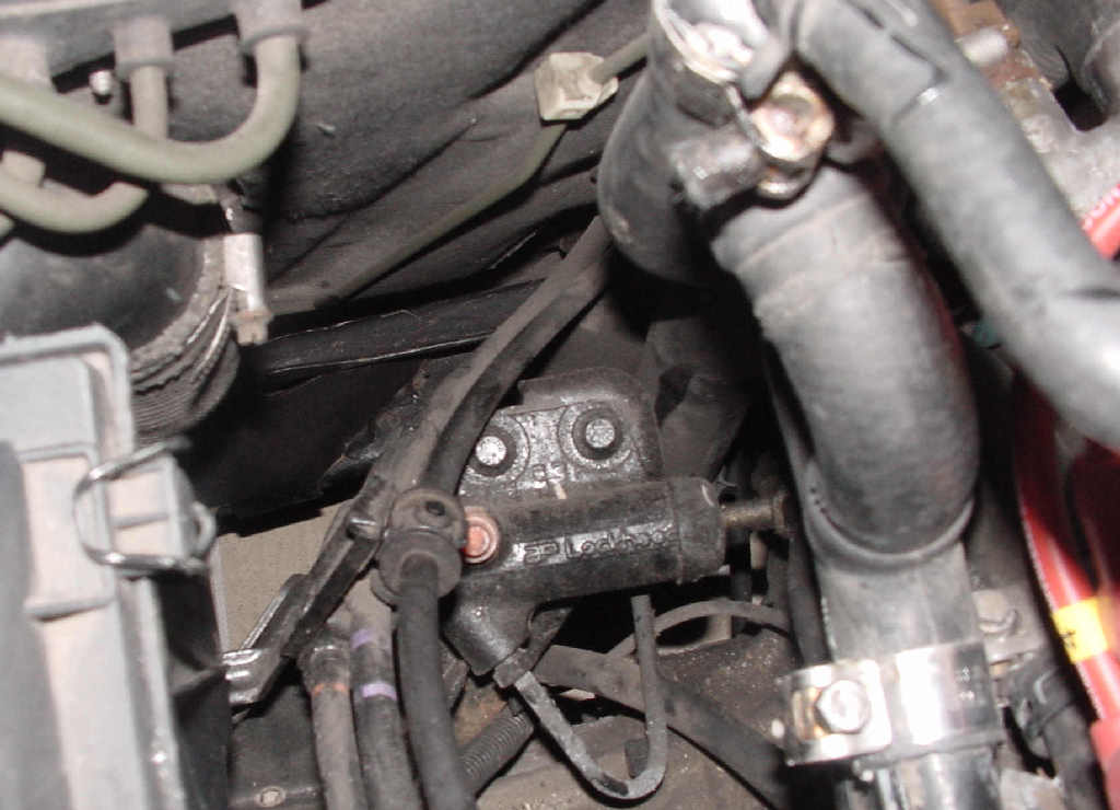 Schlauchleitung kannst du vergessen, daran liegt es nicht. Das einzige, was da Schlauch ist, ist ein kleines Stück zwischen der Rohrleitung unter dem Auto und der Leitung zum Nehmerzylinder, um die Vibrationen der Antriebseinheit abzufangen. Ist so 20 cm lang. Schau als erstes einmal, ob der Nehmerzylinder feucht ist, also die Dichtung den Geist aufgegeben hat. Das ist ein typisches Problem. Der Zylinder sitzt auf dem Getriebe etwas zur Vorderseite (in Fahrtrichtung) hin. Kommst du dran, wenn du das Gitter hinten rausnimmst und den Ansaugschlauch zwischen Luftfilter und DK rausnimmst. So sieht das von oben aus: Dateianhang: