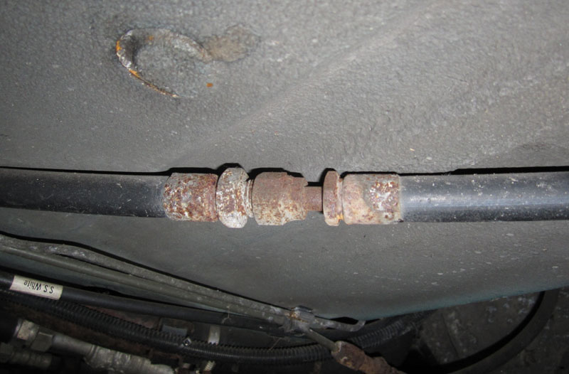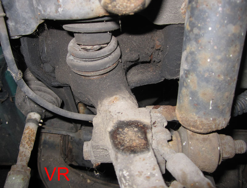 Frage I: Sind die knuckle joints (auf deutsch???) noch in Ordnung? Zwei sehen aus, als ob sie abgebrochen wären. Sogar drei, was bedeuten kann das unten die inneren Platten festgerostet sind und ggf. neue Unterlenker nötig sind. Man kriegt die mit viel Geduld und nem Schweissgerät auch in montiertem Zustand raus