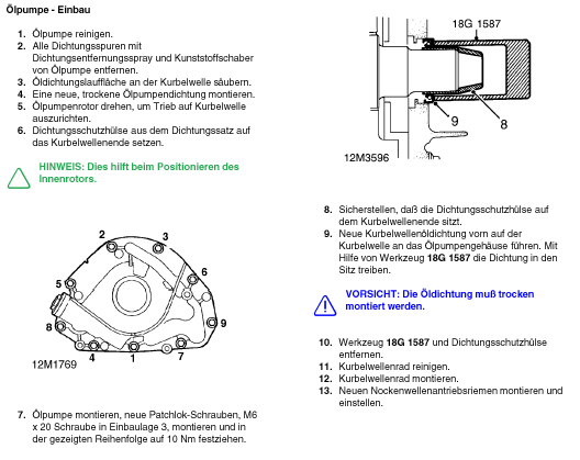 Also Drehmomente und Anziehreihenfolge hab ich nicht beachtet, aber die Pumpe ansich ist auch dicht und beim letzten Mal hab ich nur einen neuen Dichtring eingebaut und es lief. Falscher Dichtring wäre natürlich eine Möglichkeit, beim ersten mal wars genau wie dieses Mal einer aus einem Dichtungssatz und der zweite war einzeln. Gibt es da denn Unterschiede?