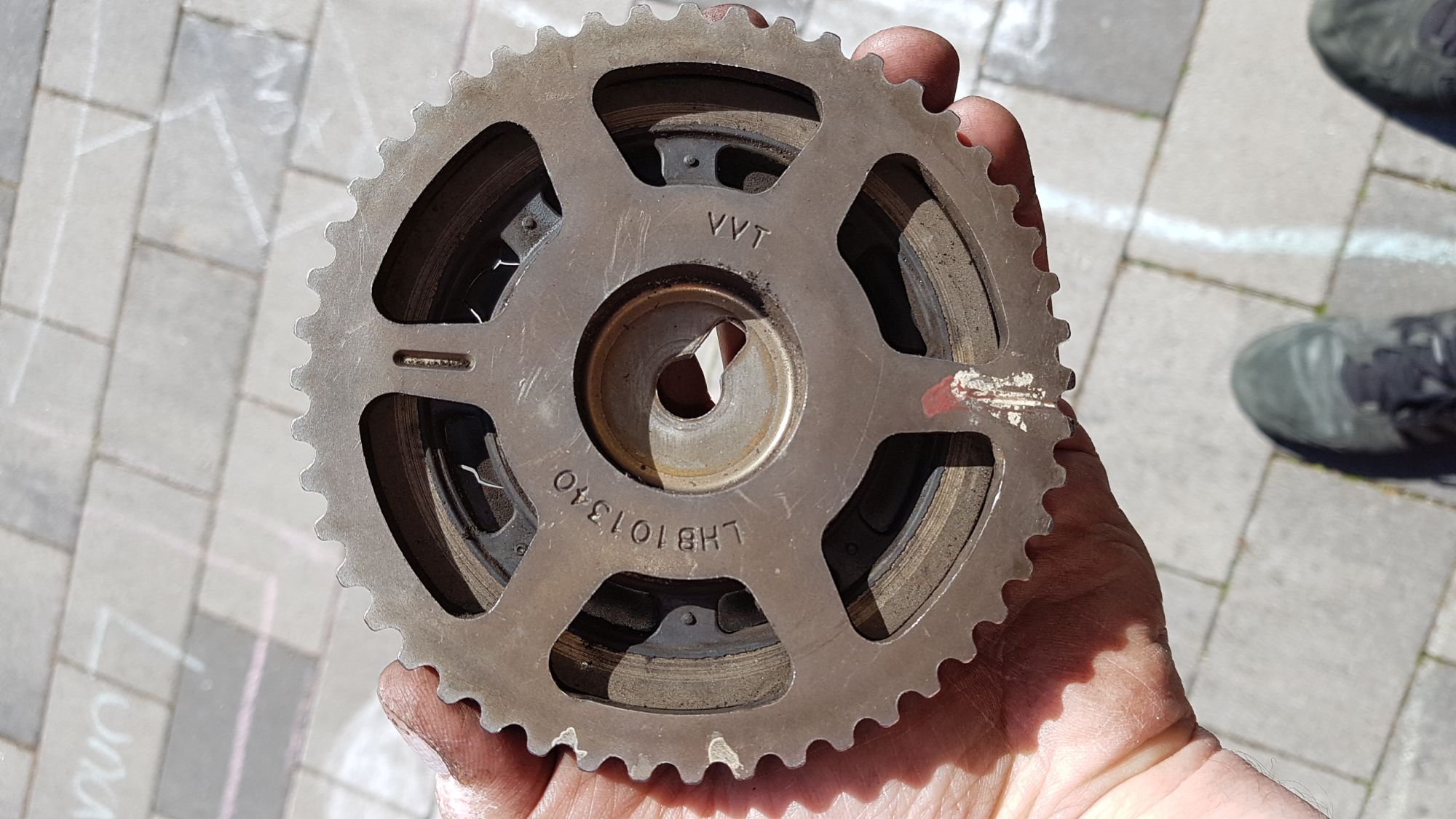 Also, hab mir das Auslassnockenwellenrad heute mal angeguckt, meines sieht genauso aus wie deines Jochen Vielleicht sind die "Risse" ja professionell ausgerechnete "Schwingungsdämpfer"