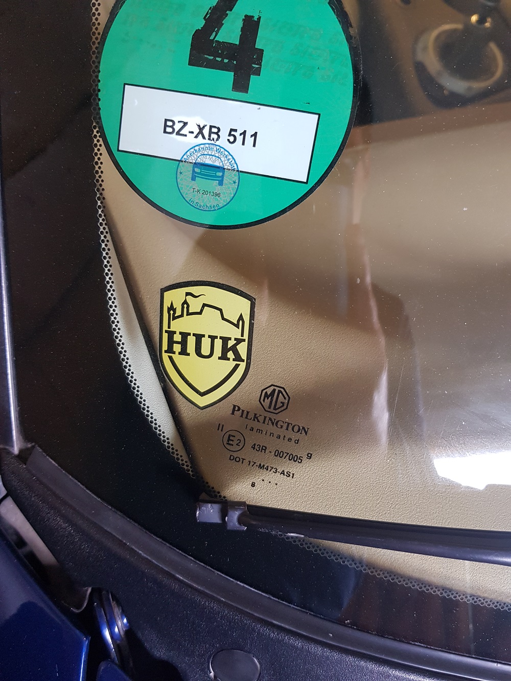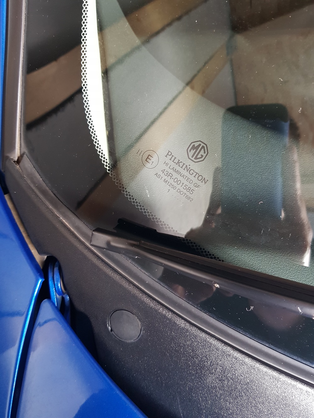 Ich habe mich vielleicht unsauber ausgedrückt. Wie Peter schon geschrieben hat, möchte ich eine Frontscheibe mit MG Logo. Das ist dann vielleicht nicht original MG/Rover weil die selber keine hergestellt haben, aber es wurde von Pilkington extra für den MGF (in "Erstausrüsterqualität") produziert und mit dem Firmenlogo versehen. Das ist das, was ich gern wieder haben möchte... Siehe Bilder: Dateianhang: