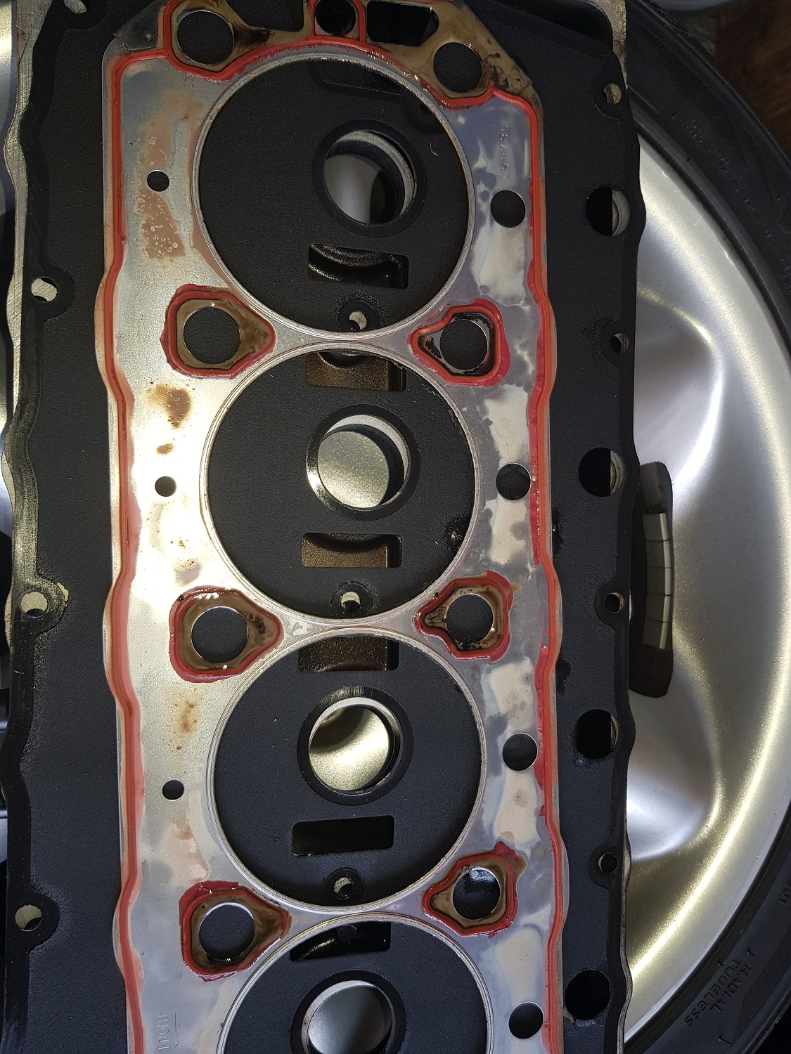 Block sieht gut aus, scheint aber bereits gereinigt zu sein. Tomcatciller hat geschrieben: Diagnose: - Ich fahre zu wenig (die Ursache allen übels?) ... - irgendwer hat da Bosch Zündkerzen reingeschraubt - Ich habe sowohl Ölablassschraube als auch Ölfilter viel zu fest angezogen.... - 9 Liter Wasser / Öl-Gemisch kamen aus der Ölablassschraube => Zylinderkopfdichtung war eine original Rover LVB 00230 (womöglich sogar die erste?) ja, gut möglich => Zylinderkopfdichtung hat an der "klassischen" Stelle - "Church Doors" versagt, einmal ursächlich für die braune Flüssigkeit, ein zweites mal kurz davor (Versatz Dichtmasse) ...