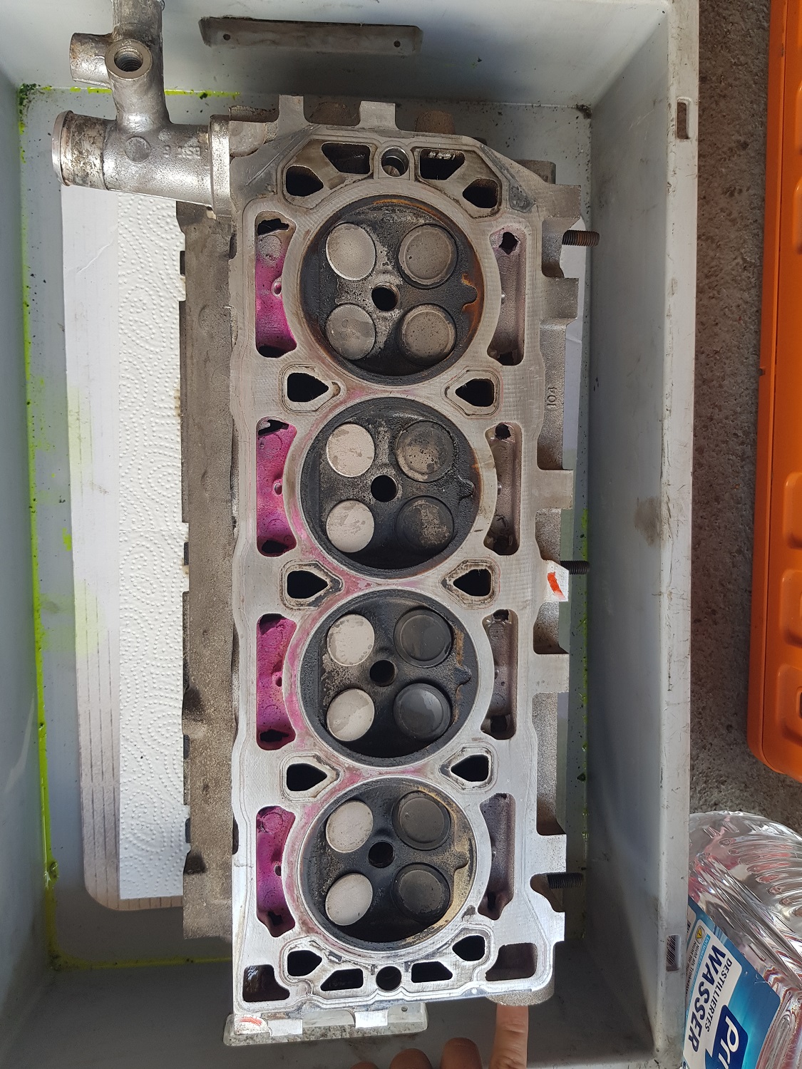 Bin gespannt wie sich der Schaden darstellt wenn der Zylinderkopf ab ist. Erste Vermutungen gehen in Richtung Laufbuchsen gesetzt wegen dem Wasserabfluss. Wir werden sehen. Grüße aus Chemnitz