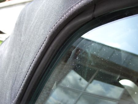 Ordentlich Schmiermittel an den Verdeckgummi, z.b. Silikonspray oder etwas in der Art. Wenn das nicht reicht, müsste man die komplette Scheibe neu einstellen.
