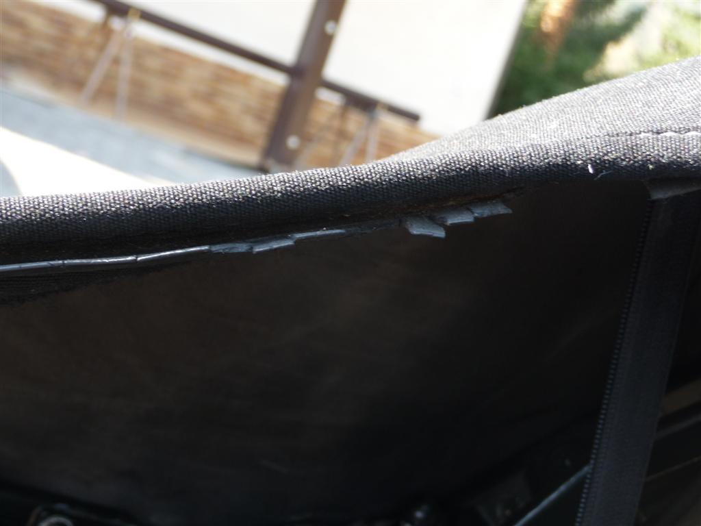 edit...oops, streichen sie meinen kommentar, bei mir ist es wirklich auf dem teil mit der heckscheibe und nicht wie auf dem foto auf der "verdeck-seite". denke da hilft wohl nur ein neues verdeck oder der sattler?