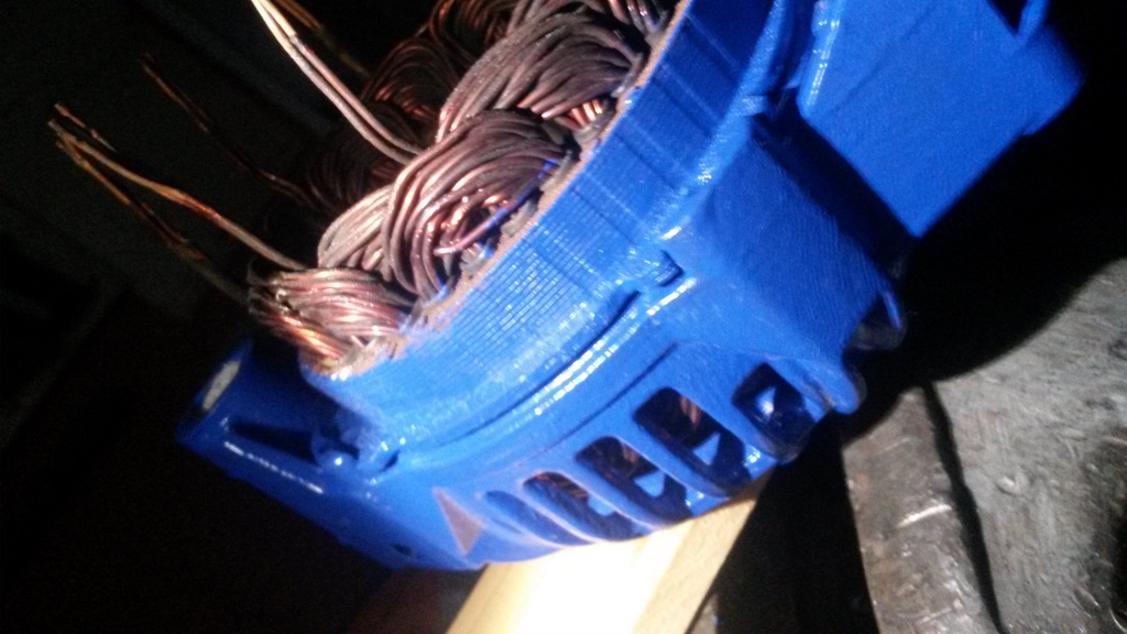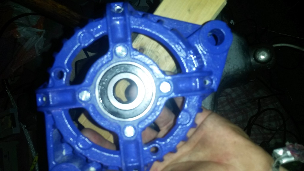 Gehäuse und Riemenscheibe wurden Gesandstrahlt. Gehäuse danach mit Brantho Korrux Ultramarineblau angemalt.