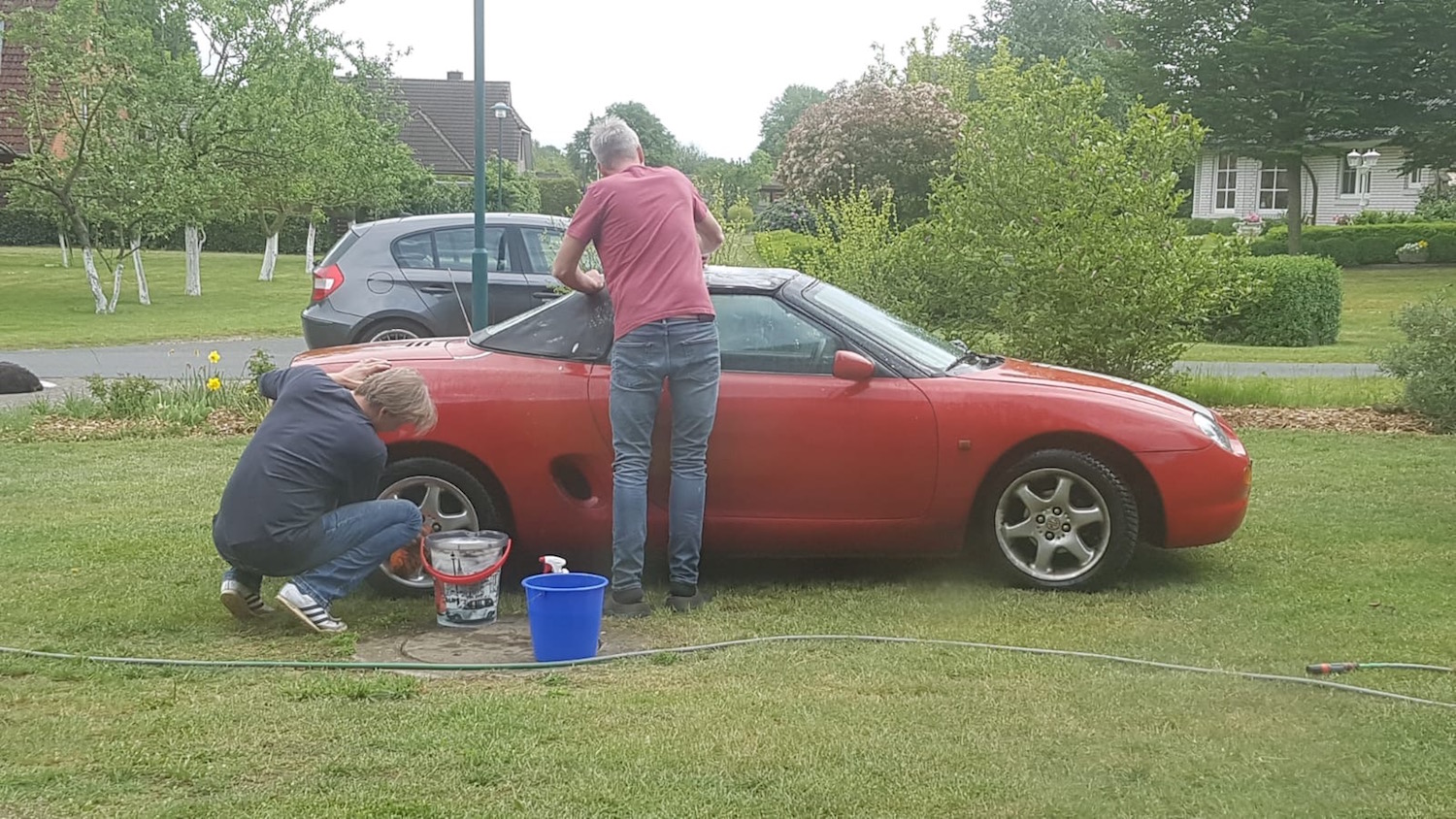 Deine roten Sitze sind im Turbo und das sieht mal richtig geil aus. Also die Sitze sehen geil aus, das Auto derzeit eher nich so ... Er war am Wochenende in der Waschanlage. Beim Oberwaschbär Jan ! Dateianhang: