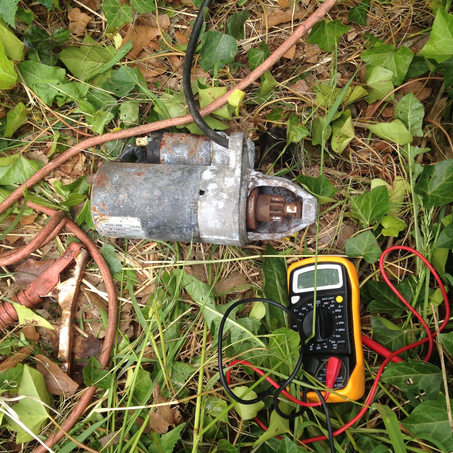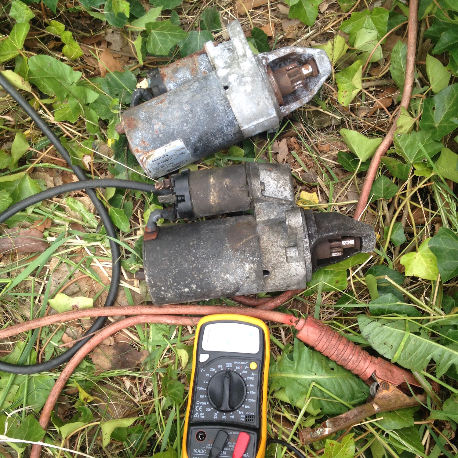 Masse kann ich glücklicherweise ausschließen ! Wär die nich da könnt ich am Motor nix messen. Uhh, gefährliches Halbwissen sag ich mal ... ABÄ : bin nur drin um Reinholds Anleitung nochmal zu lesen. Batterie hat 14,7 V vorn, vollgeladen bis unners Dach ! Beim Starten bricht die auf 8,6 V auf der Plusleitung ein ... dascha schon mal Scheisse, wenn ich das Reinholds Anleitung richtig deute ... Errr, und was heisst das nochmal ? Ok, auf dem Plus des Magnetschalters nochmal messen, lese ich gerade. Versuch ich jetzt nochmal ! Ansonsten: Batterie vorne raus, hinten direkt ran und und Brücken bis die Funken fliegen, ist dann wohl der nächste Schritt. OK ! los gehts ! Und ich hab hier noch nen Anlasser gefunden und der ist nicht vom Hr. Baron ... Wird gleich mitgetestet ... Feuerlöscher zwei, drei, vier ...