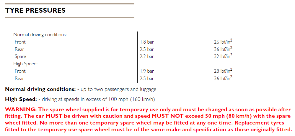 du hast im Tankdeckel den Reifendruck stehen ? mach mal bitte ein Foto davon  Die letzten von MG rausgegebenen Werte waren diese: Dateianhang: