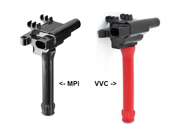 Die Zündspulen sind gleich, nur die Feder und die Gummitülle untendran unterscheiden sich. Dasselbe gilt dann natürlich auch für die Zündkabel, NGC000040 für den MPi, NGC000030 für den VVC.