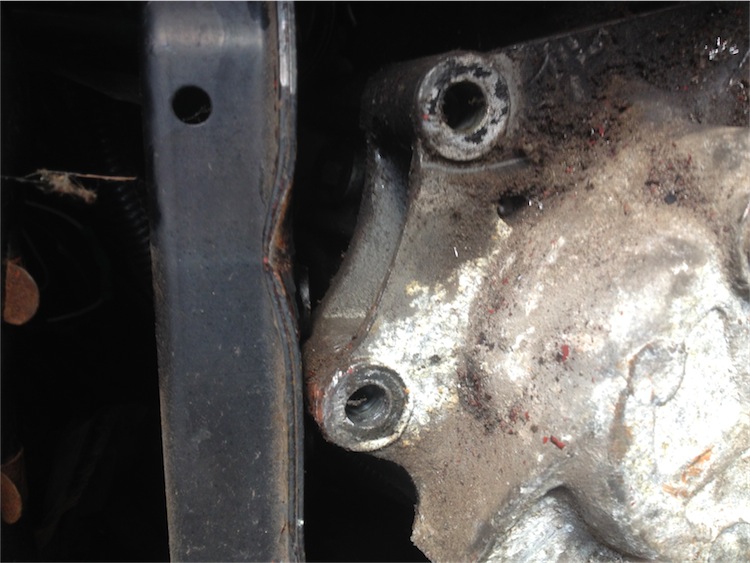 Der Hilfsrahmen hat ne Delle davongetragen, naja, nix worüber man sich aufregen muss ... Dafür hab ich jetzt vollen Zugang zur Kupplung Dateianhang: