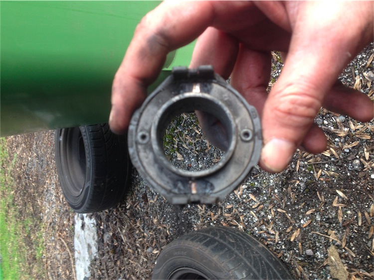 und hab feststellen können , das der Ausrückhebel sich bester Gesundheit erfreut ! Der ist nicht fest ! Das Ausrücklager ist auch OK , schaut selbst : Dateianhang: