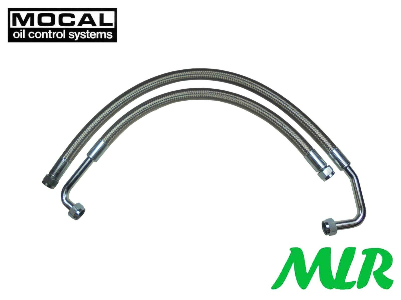 Hallo interessierte. Ich habe heute Rückmeldung aus England bekommen. Die Leitung nachzubauen ist nicht ganz so einfach wie gedacht. Die Anschlüsse zum Ölkühler sind Automotive Katalogware, die Gummischläuche und die Stahlleitungen auch. Muss nur richtig konfektioniert und gebogen werden. Das Problem sind die Anschlüsse zum Ölfiltersockel. Das ist was spezielles. Jetzt gibt es wohl zwei Optionen: - Versuch eines 1/1 Nachbaus in Stahl durch einen Hyraulikleitungsspezialisten - Stahlflexleitung "2x stainless steel braided hoses" mit den passenden Anschlüssen ähnlich wie diese hier vom MGC: Dateianhang: