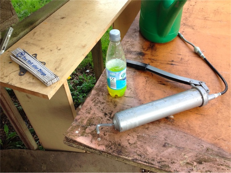 Folgendes hat sich heute bei mir, ( bei allerbestem Fussballwetter muss ich kurz zwischenschieben ) unterm Carport zugetragen ... Ehrlich .. so war´s ! Ich hab mir heut ein Herz gefasst und bin mit dem Paket der Hydrogaspumpe unters Carport gehumpelt und hab mich an das hoch hieven meines Mistbocks gemacht : Was braucht man dazu : 1. nen coolen Typen aus Rostock , ohne den hätts nich stattgefunden ... Sebastian ! 2. ne Pulle Capri Sonne Waldmeister und ne Fettpresse aus dem 16 Jahrhundert , die sicher im " Museum für Alltagsgeschichte des Mittelalters, Rostock " vermißt wird ... LOL ! : Dateianhang: