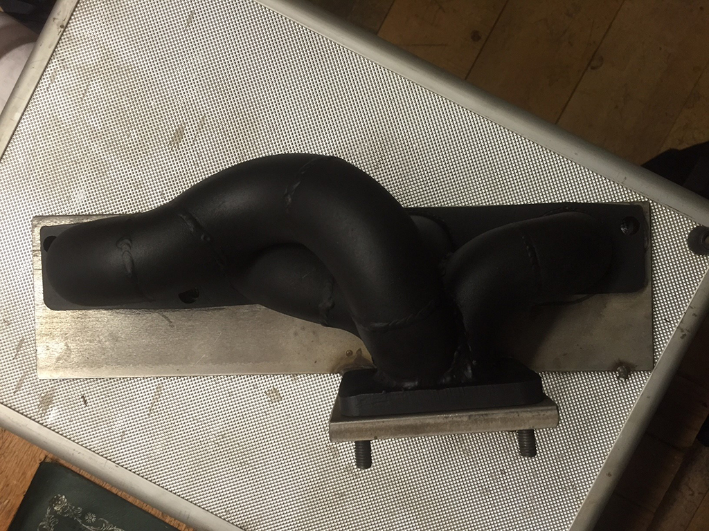 Ist natürlich ein ganzer Satz und die sind ja freigegeben. Reifen sollten für die Abnahme und den Rest des Jahres auch noch reichen. Wir müssen uns aber nun langsam mal sputen … Ansonsten konnte ich ja in UK mal einen Blick auf den Prototypen des nachgefertigten Turbokrümmers werfen, so sieht das gute Stück aus: Dateianhang: