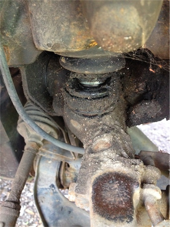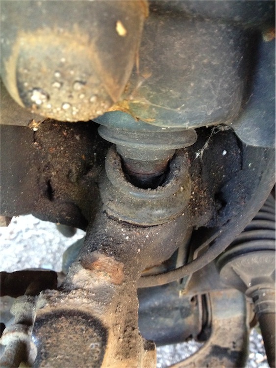 Boah , jetzt kommt Bewegung in die Geschichte ! Die Schraubergilde rückt an ! Jan 68 und Jim Knopf vom Porta West Afrika A-Team ( "A" wie Aussendienst !? ) werden sich am Samstag meinen "Mistbock" mal anschauen ... und sich warscheinlich verdutzt die Augen reiben ... huaaa.... Da die ganze Nummer äusserst kranke Züge annimmt ... ( diverse meiner Kumpels , wollen sich auch einen zulegen ... andere finden das als " Ganzes " einfach Klasse ! Und evtl. kommt jemand vorbei , der das im Film festhalten möchte, zum hochladen auf Youtube ... Die Kreativen / ( VOLLIDIOTEN !! meine ich natürlich ) kreisen hier im Orbit ... sagt mal , ob Ihr damit einverstanden bzw. Ihr Euch das vorstellen könntet ... Dazu gilt es einige Vorbereitungen zu treffen ! ( Rasenmähen , Bier holen , Kinder waschen , Frau ins Kino schicken , Cappucino Standleitung legen ( Die Chefschrauber scheinen im allgemeinen dem Alkohol nicht so zugetan zu sein ... HÖRT,HÖRT ! ...  ) Grill , Friseurtermin morgen machen usw. , Peeling , Yoga , Sonnencreme , usw. Damit Ihr Euch schon mal ein weiteres Bild von Eurem selbst gewählten Abenteuer machen könnt ... Floflex Poly´s kommen nächste Woche und die "compliant washers" gehen direkt ins Hauptquartier nach Oelde ... Danke Philipp ! Jan , den Dreieckslenker hab ich wie gewünscht von den Gummibuchsen befreit , die 3 Nieten die das Gelenk halten , hab ich angebohrt , dann mit nem Meißel abgeschert. Doch dann war Schluss , beim Versuch die durchzutreiben , hab ich mir volle Marie auf die Paddeln mitm Hammer gehauen , seitdem wird gekühlt ... KACKE ! Jan , hier die Bilder von den Maschetten hinten , eine hat schwerste Parodontose, der Zahnhals liegt, wie bei den beiden vorn, offen wie ein Scheunentor : Dateianhang: