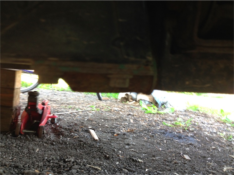 So , aufgebockt isser , nachdem ich Dieters Seite nun ausgiebig studiert hab und den Dreieckslenker von Jan von den Poly´s und Gelenk befreit hab , steht mir nun die Scheisse bis zum Hals ... hier links : Dateianhang: