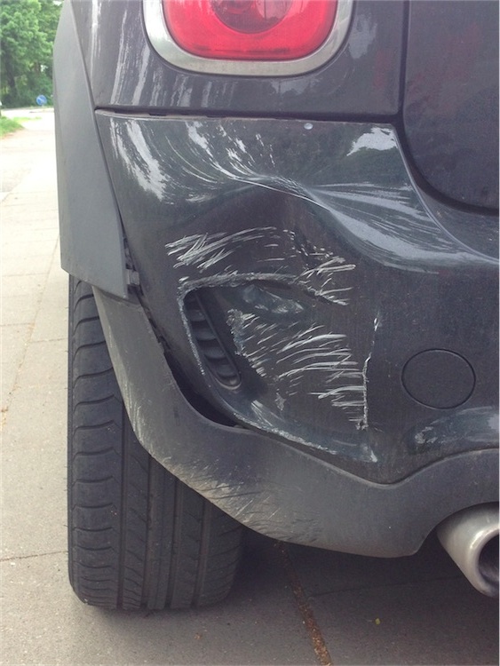 So, meine Laune ist dementsprechend ... der Mini hat leider keine Einparkhilfesensoren ( oder wie die heißen ) , die hätten hier ja mal wirklich geholfen ... Da sieht man beim MINI nach hinten raus nix .. der Poller auch mal wieder in der "richtigen" Höhe ! Dateianhang: