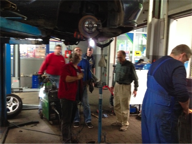 Die Jungs haben da richtig dran zu tun gehabt ! Das geht definitiv nicht Allein ! Und als Jan mir sagte , das es diese Stabis auch noch für hinten gibt ... öh , nee ! Da bleiben die Alten drin ! Drauf geschiXXXX .... Hier " da Man ! " ( der hat keine zwei linken Hände !! )  ( eins der wenigen verwackelten, Sorry , sind immer Aktionphotos !  ) : Dateianhang: