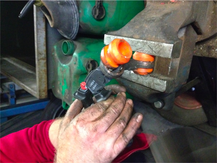 Bei mir war "Tag der ausgeschlagenen Buchse" , deshalb hab ich mir so nen Floflex Polybuchsensatz zufliegen lassen, auf Anraten vom Jan. Nach 16 Jahren "Hamburger Bergrennen" waren die völlig fertig und schrien förmlich danach , von diesen orangenen erstetzt zu werden. Die Farbe is allerdings eklig ... wird aber hoffentlich dem Mann vom TÜV gnädig stimmen. Als ob man da ne Orange reingedrückt hätte ... IHHHH !  Dateianhang: