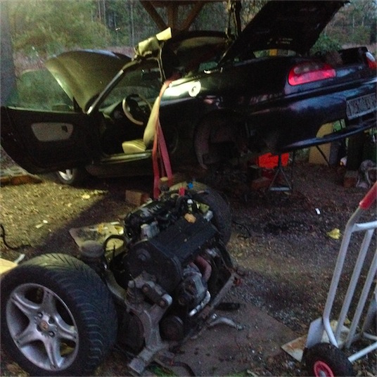 Andere feiern ne gefallene Mauer, Ihr halt nen fast gefallenen Carport, Hut ab Habt ihr den Wagen wirklich hinten hochgezogen am Carport? Nu schnell den Motor tauschen und das Geraffel wieder retour under den MG schrauben. Hoffe da waren keine Schrauben am Hilfsrahmen abgerissen und ihr wisst noch so grob, was wohin gehört