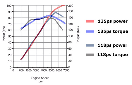 Nur als Info zum Post von Klaus. Vergleich zwischen einem 120 und 135 PS Motor: