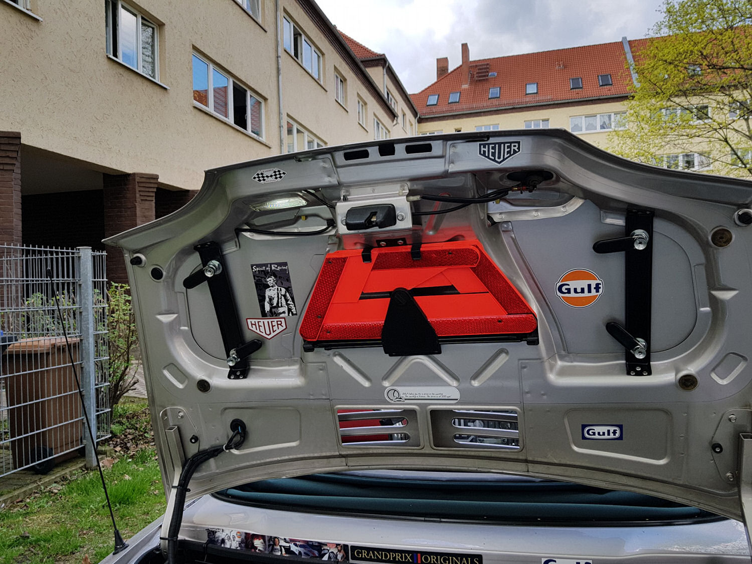 Hab mal das Zubehörwarndreieck für den MGF bei mir eingebaut . Laut Prospekt gehört es anders herum , aber das fand ich irgendwie etwas unpraktisch. So lässt es sich besser rausnehmen.