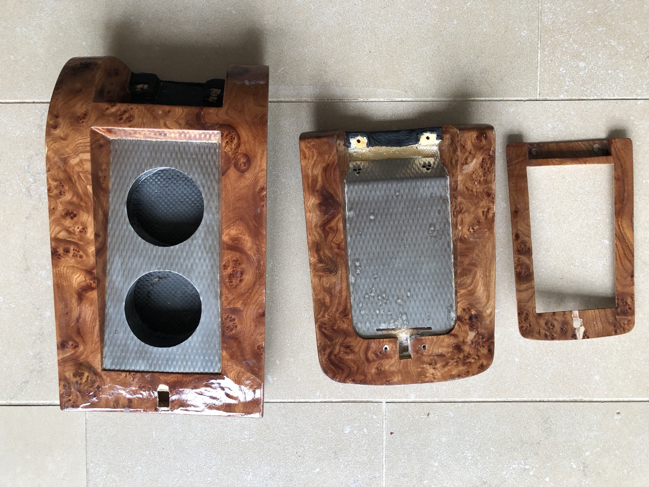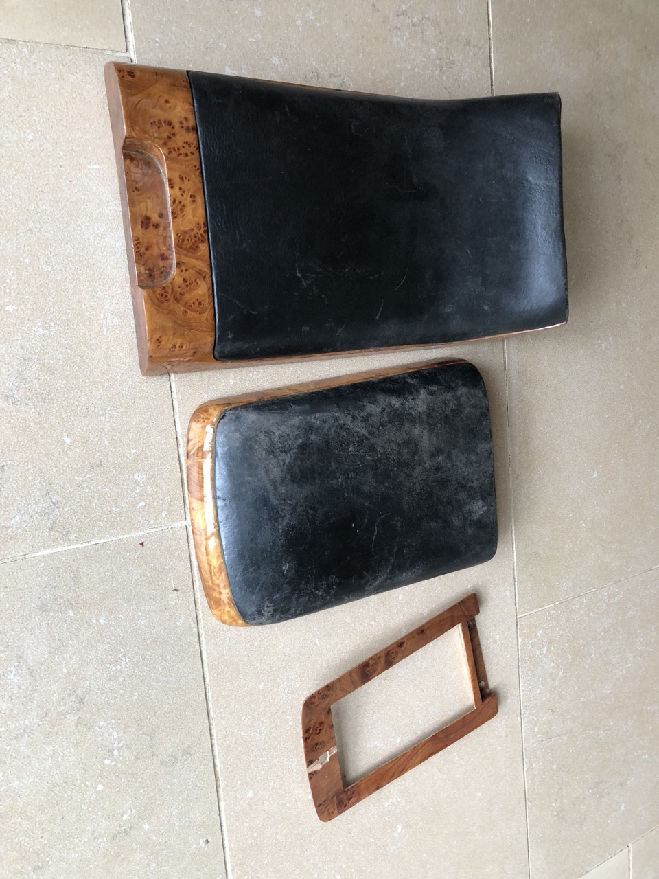 Die Teile passen zumindest zur ersten Serie und bedürfen der Verschlüsse und Gelenke der Standardteile. Die Klappen sind aus Glas-/Kohlefaser mit Schaumkern gefertigt, das Wurzelfurnier ist auf dünnes Sperrholz geleimt. Das Ziegenleder der Armablage mochte nicht so die Pads meiner Skijacke, das könnte man erneuern.