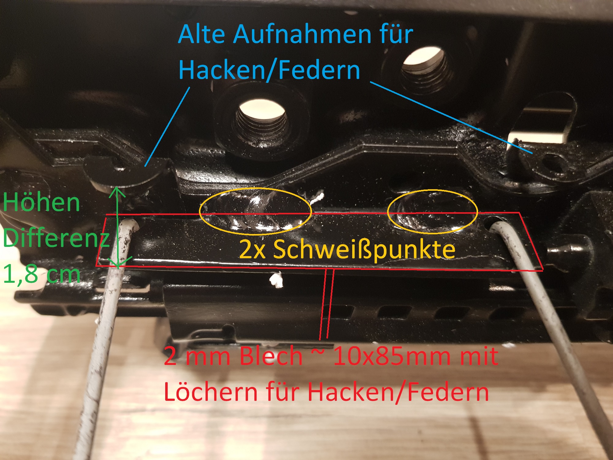 Ich habe auch den Sitz umschweissen lassen und verwende längere Federn. Alles gut …
