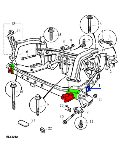 Im Prinzip bedeutet dies, den unteren Querlenker und die Zugstange der MG F-Aufhängung sowie die Radnabe zu entfernen. Dann müssten am Hilfsrahmen die Aufnahmen der Zugstangen (rot in der Zeichnung) abgeflext werden. Die Aufnahmen des TF-Längslenkers werden an den vorderen Befestigungspunkten der Motorträger mit verschraubt (grün). Das ist also schon vorhanden. Die unteren Spurstangen ersetzen quasi den bisherigen Querlenker, so wie es aussieht sind die Befestigungspunkte hier auch identisch (blaue Pfeile). Soweit - so gut. Die oberen Querlenker vom MG F würden bleiben, genau wie auch der Stabilisator, die Stoßdämpfer und die Hydragaseinheiten. In die Radnabe müssten dann natürlich oben das flache Traggelenk vom MG F in die TF-Nabe reingeschraubt werden, damit die Distanz wieder passt. Bleiben noch die hinteren Spurstangen, die beim TF ja länger und anders aufgehängt sind. Da gibt es nun die Frage: Entweder man verwendet die kurzen Spurstangen vom MG F an den originalen Punkten am Hilfsrahmen weiter oder man entfernt beim MG F-Rahmen die hintere untere Querstrebe samt Wagenheberaufnahme (gelb im folgenden Bild): Dateianhang: