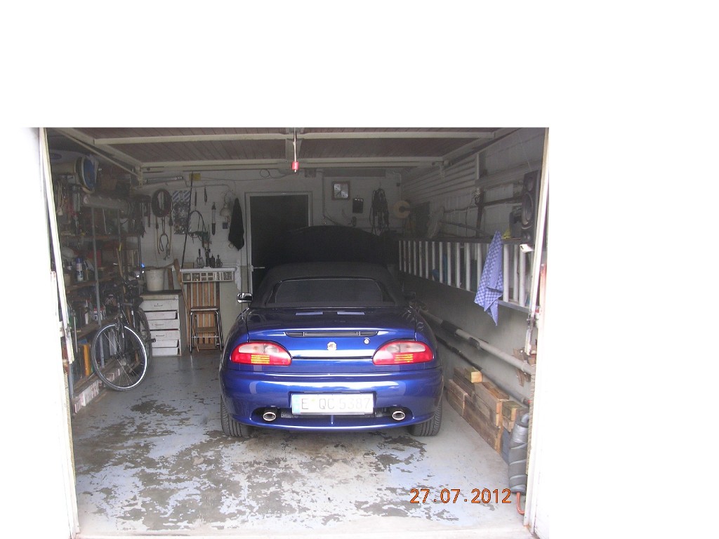 Wie wenig Platz man doch zum (MG) schrauben braucht wollte ich mal hier am Beispiel meiner Garage zeigen. Hier habe ich restlos alles selber gemacht, egal ob Stoßdämpfertausch, Heckscheibenwechsel, Zahnriemen, WaPu, Unterbodenrohre, Kat. & Hosenrohr etc. etc. ... Gute Abstellböcke, zwei Auffahrrampen, ein Wagenheber, LED Leuchten (mangels Stromanschluss) und ein prall gefüllter Werkzeugwagen, geht alles Auf auf, zeigt wo ihr so schraubt