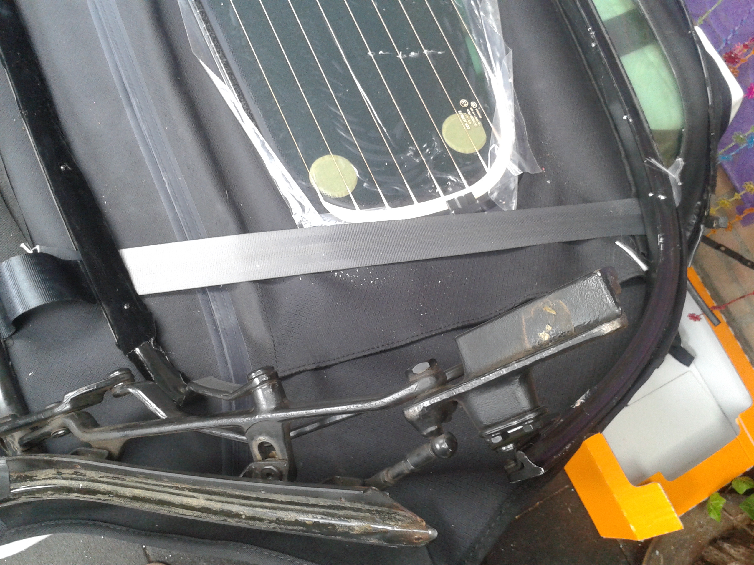 Ja, ist es. Ich habe mir die Verdeckhaut angesehen, alle Nietlöcher sind vorgestanzt, die Schnitte für das Gurtband sind auch schon drin. P-J meint, es wäre etwas einfacher, den Verdeckrahmen auszubauen (sind nur 4 Schrauben), aber es klappt auch im eingebauten Zustand.