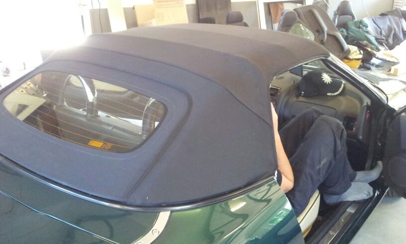 Positiv ist, dass die etwas anders aufgebaut sind als die MG-Rover Variante. Die Scheibe sitzt etwas höher, sodass das Verdeck beim Zusammenfalten untenrum nicht so spack sitzt (wer die BAS-Scheibe verbaut hat, weiß was ich meine). Auch die Verarbeitung ist sehr ordentlich, obwohl die Teile natürlich „Made in China“ sind. Es gibt auch keinen Reißverschluss mehr, der ist nicht nötig. Stattdessen ist das Heckteil rundherum vernäht und zusätzlich innen noch mit einem Gurtband abgefangen, sodass diese Falte links und Rechts von der Scheibe nicht auftritt, wie das bei nachgerüsteten Glas-Heckscheiben meist ist. Kosmetische Sache, aber eben unschön.