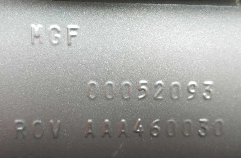 MGF: MPi 1,8 i 120 PS, LHD, Schaltgetriebe, außen Nightfire Red (CAQ), innen Leder schwarz (PUU) gebaut am 5.1.1999 um 12:20 Uhr für den Export nach Deutschland noch ein echter Mk1 Mod Edit: 22.1.1999 war dann Import nach D und somit wahrschenlich auch die EZ Motornummer sollte sein: 18K4FJ31 196892