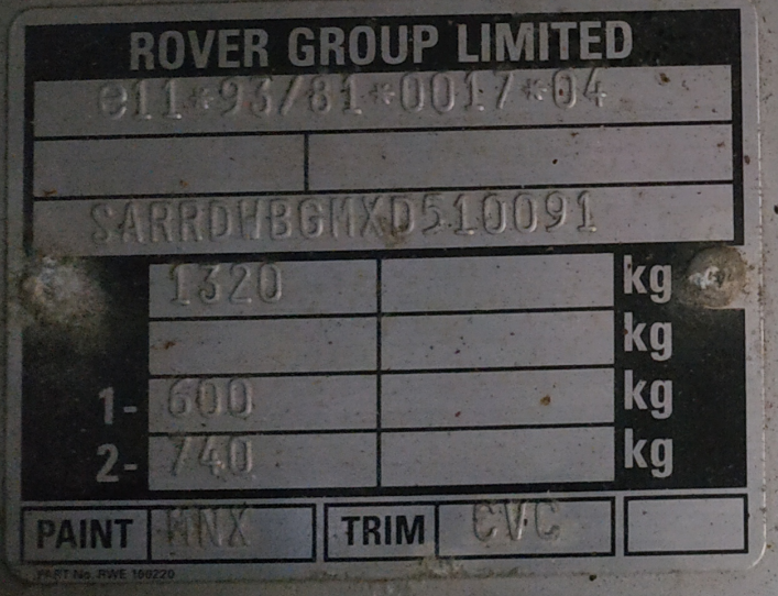 Pyka hat geschrieben: Habs bisher auch versäumt. SARRDWBGMXD504634 Was gibts hierfür?  Dieter hat geschrieben: 7.12.1998 vom Band gerollt 14.12.1998 ausgeliefert 31.12.1998 nach D importiert LHD 120ps HFF British Racing Green WEW Lightstone Leather Austauschmotor haste ja schon im Profil stehen Mahlzeit, habe mir mal die Motornummer von meinem Austauschmotor angeguckt. 18K4FM15 327341 Kann man damit Rückschlüsse auf das Spenderauto schließen?