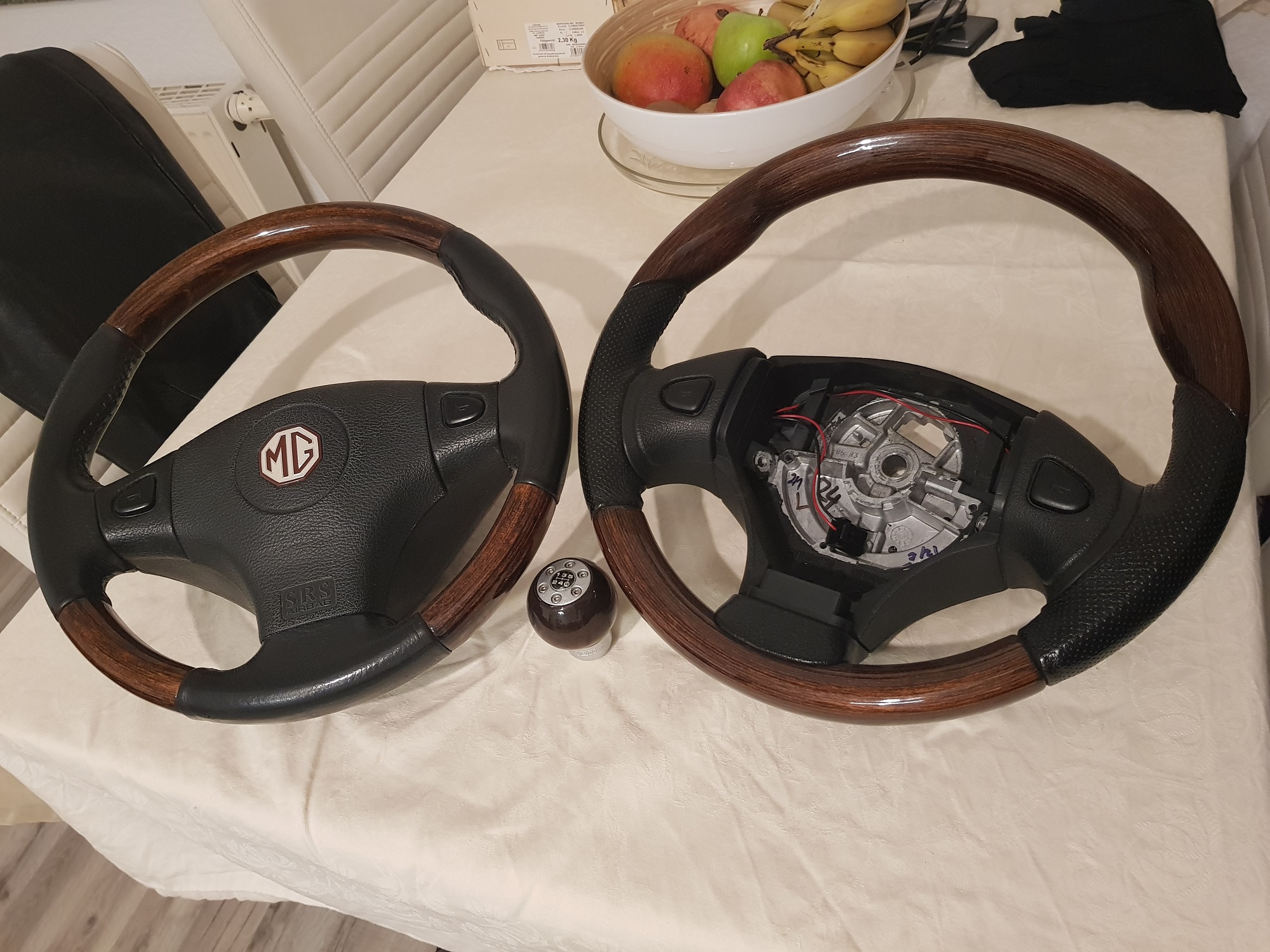 Ich hatte mir, um den Holzanteil in meinem Mk1 zu erhöhen, einen Momo Wurzelholzknauf bei Kleinanzeigen gekauft. Immerhin ein original MG Rover (VUO100050) Knauf mit passendem Gewinde und kein Momo Aftermarket mit Madenschrauben.