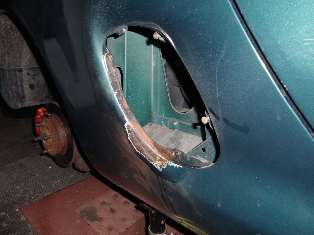 Der Kotflügel hinten links ist unfachmännisch repariert und lackiert worden: Dateianhang: