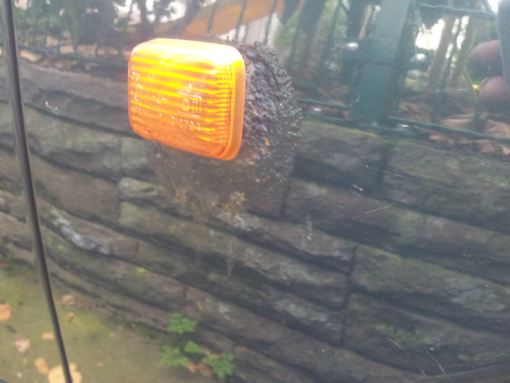 Der Kotflügel hinten links ist unfachmännisch repariert und lackiert worden: Dateianhang: