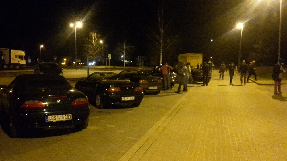 Aber gerne doch! Drei Fotos von der Abfahrt an der Raststätte Michendorf Nord kurz vor 22 Uhr, dann noch 2 von der Ankunft nach 161 km und gut eineinhalb Stunden an der Raststätte Fichtenplan. der mussten uns einige der lokalen Teilnehmer leider verlassen. Wir sind dann noch (natürlich offen) die restlichen 45 km zum Hotel gefahren, also haben wir den Berliner Ring in der Tat voll umrundet. Ankunft in Babelsberg um Mitternacht, dann noch bis viertel vor drei zum Chillen (oder eher: Warmen) in einer Billard-Bar. Cool war’s (im Wortsinn!!) und 320 Euro Spenden für Ärzte ohne Grenzen haben wir gesammelt. Besten Dank an alle, die dabei waren. Von denen gibt’s sicher auch noch mehr Bilder. Dateianhang: